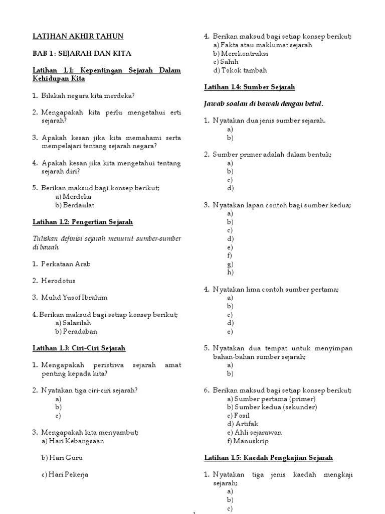 Huraikan tentang sistem pendidikan yang disediakan oleh keluarga brooke untuk orang melayu?. Mengapakah syarikat hindi timur inggeris (shti) memerlukan sebuah. Latihan sejarah tingkatan 2 kssm ini disusun dalam google form dari bab 1, bab 2, bab 3, bab 4, bab 4, bab 6, bab 7, bab 8, bab 9 dan bab . 1|peperiksaan pertengahan penggal dua sejarah (tingkatan 2) d. Soalan esei bab 1 tingkatan 2 + jawapan (lh) (prk) 0 · soalan struktur bab 1 tingkatan 2 + jawapan .